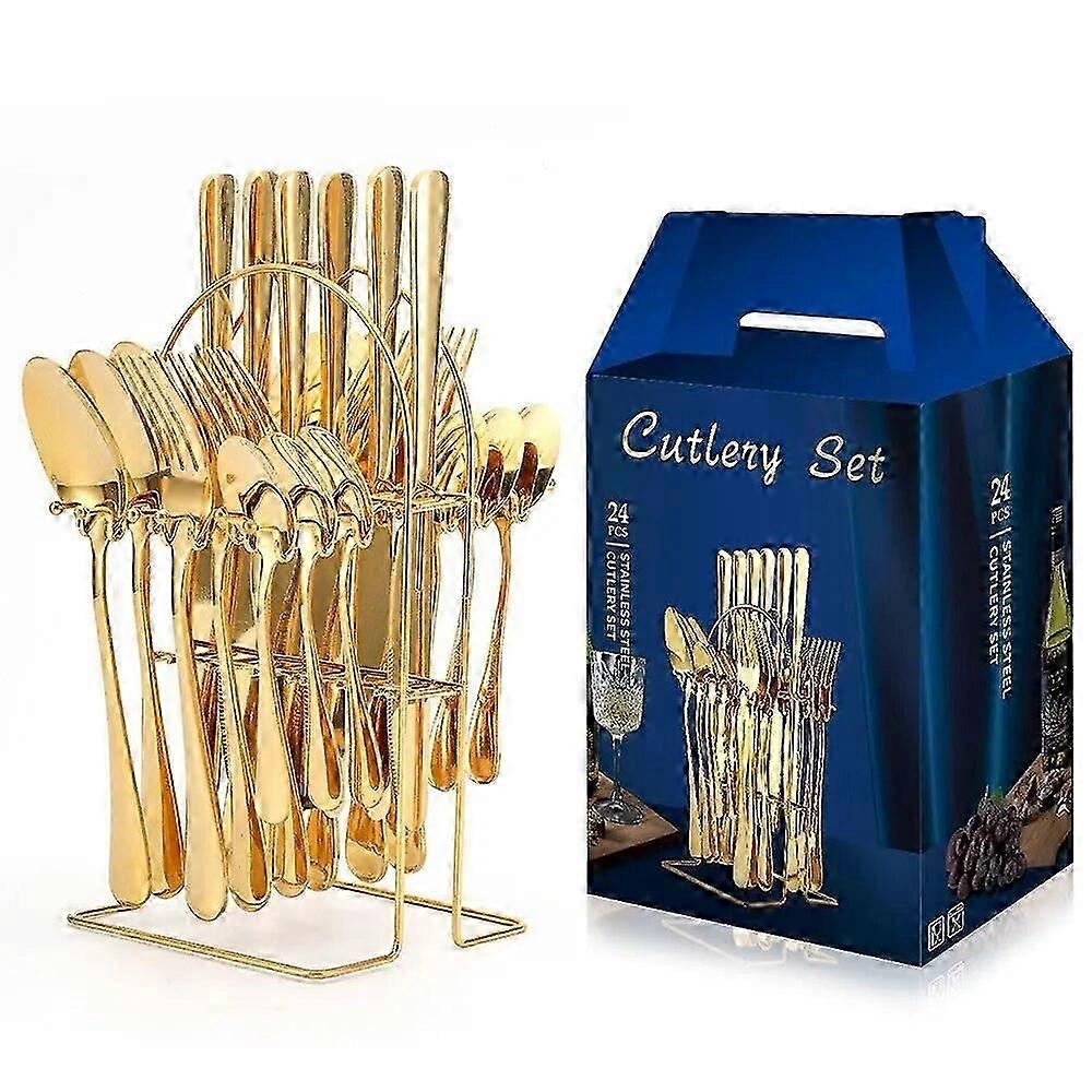24pcs/Set Stainless Steel Cutlery Set with Holder & Gift Box - Perfect Tableware Set for Any Occasion!