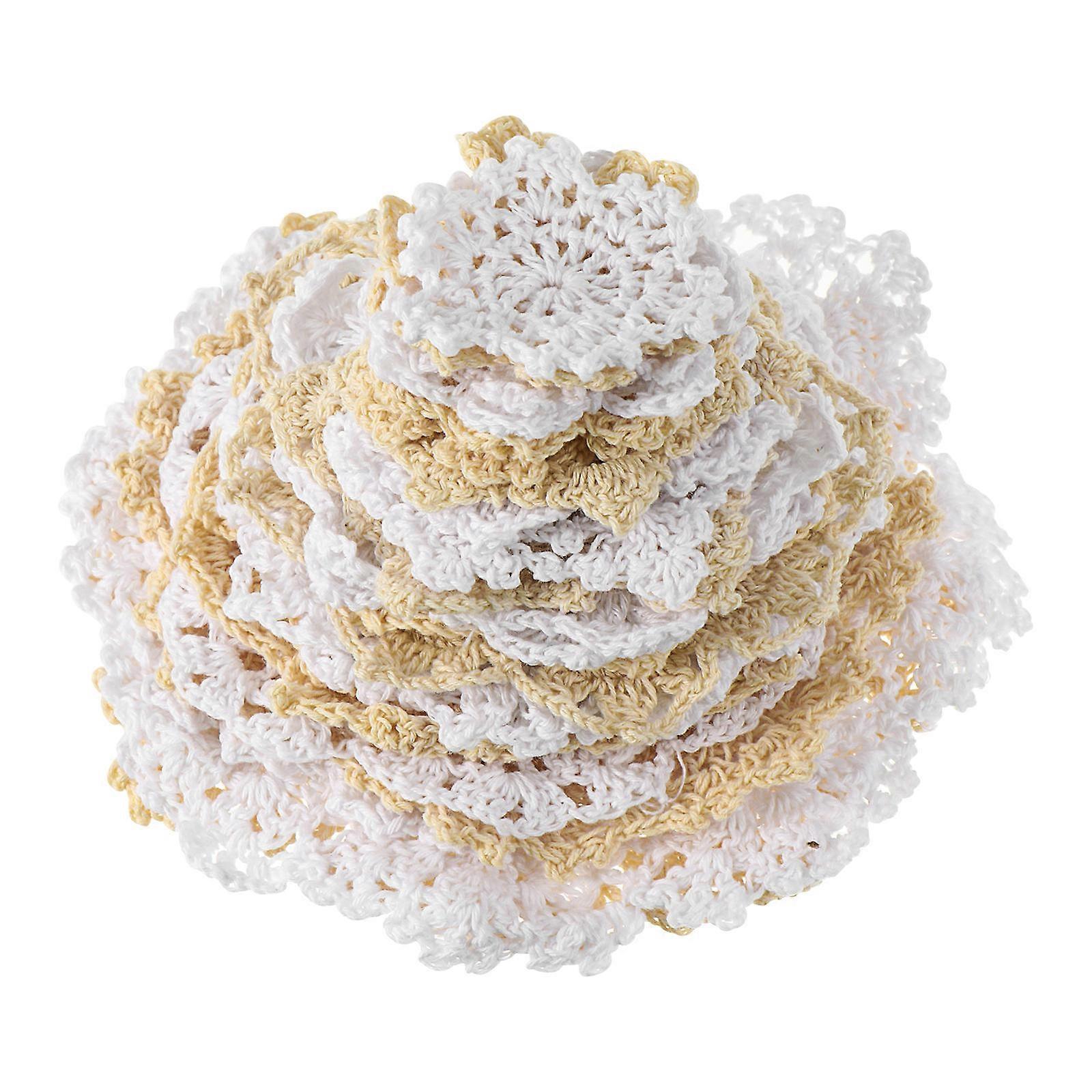 24pcs Handmade Crochet Cotton Lace Appliques Floral Doilies Placemats Slip Washable Table Decor Diy Patches Home Embellishment