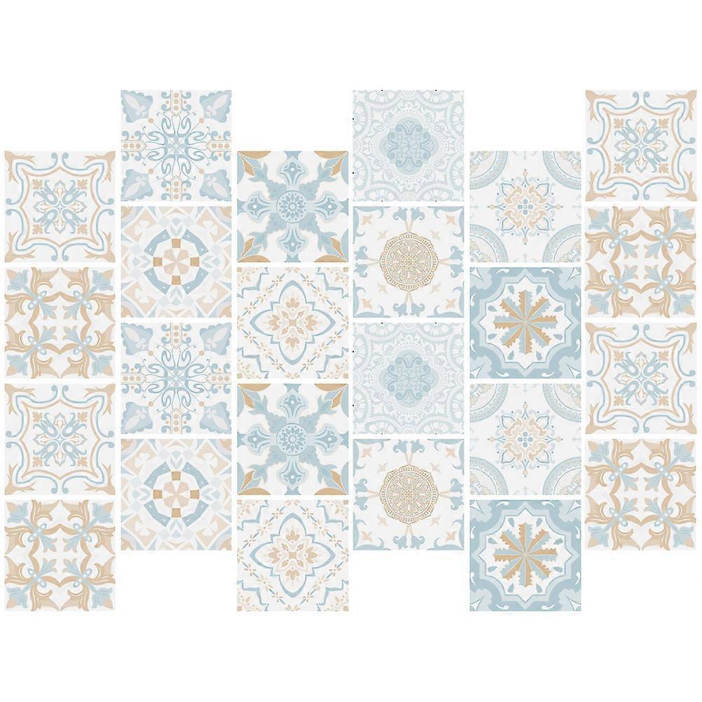 24pcs Vintage Floral Tile Stickers, Self Adhesive Peel and Stick Wall Decals for Kitchen Home Decor, Oil Material, Easy DIY Installation, Retro Design