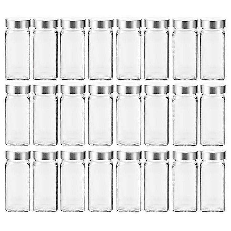 24Pcs 4oz Square Spice Jar with Stainless Steel Lid Transparent Glass Seasoning Container ( No FDA, BPA Free )