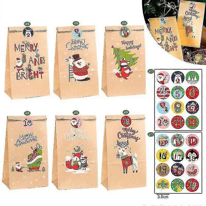 24pcs Christmas Kraft Paper Bags Santa Claus Snowman Fox Holiday Xmas Party Favor Bag Candy
