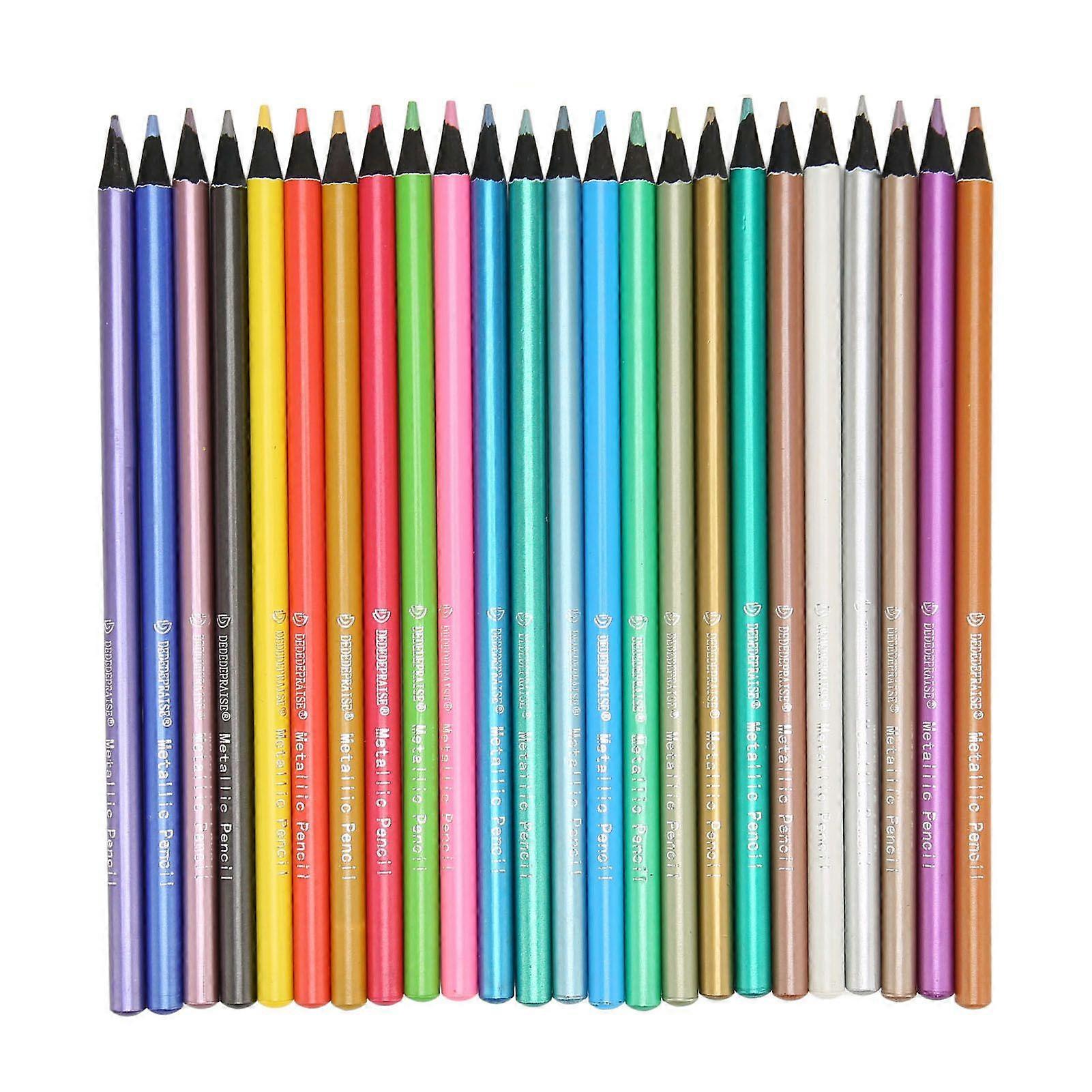 24pcs Colored Pencils 24 Color Metallic Wooden Barrel Coloring Pencils for Doodling Handbook Drawing