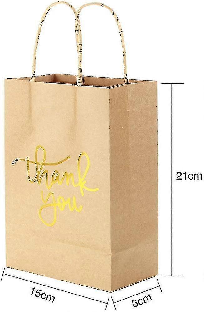 24 Paper Bags With Handles - Kraft Paper Bag With Thank You Font. For Parties.
