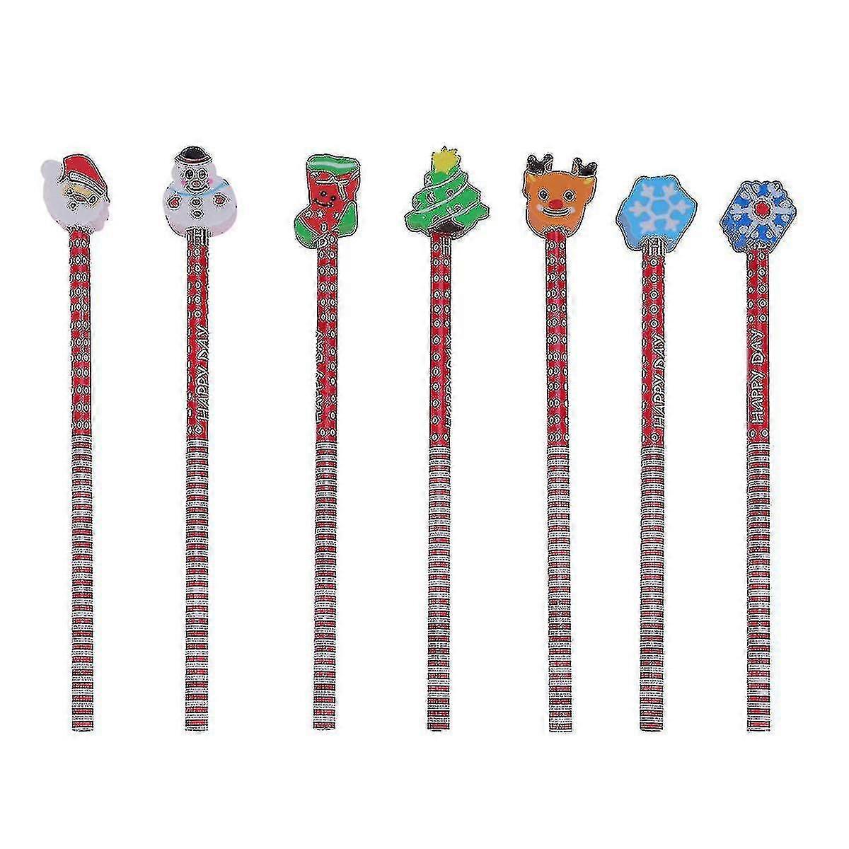 Christmas 24 Pcs Christmas Pencil With Eraser Students Pencils With Rubber Erasers Cartoon Pencils Christmas Gift Office School Stationery High Qualit