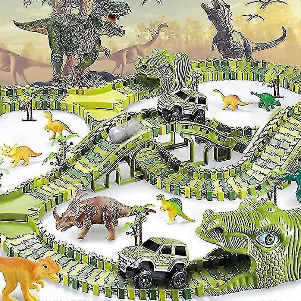 240 Pcs Dinosaur Toys, Dinosaur Toys Race Track Playset For Boys And Girls Gifts