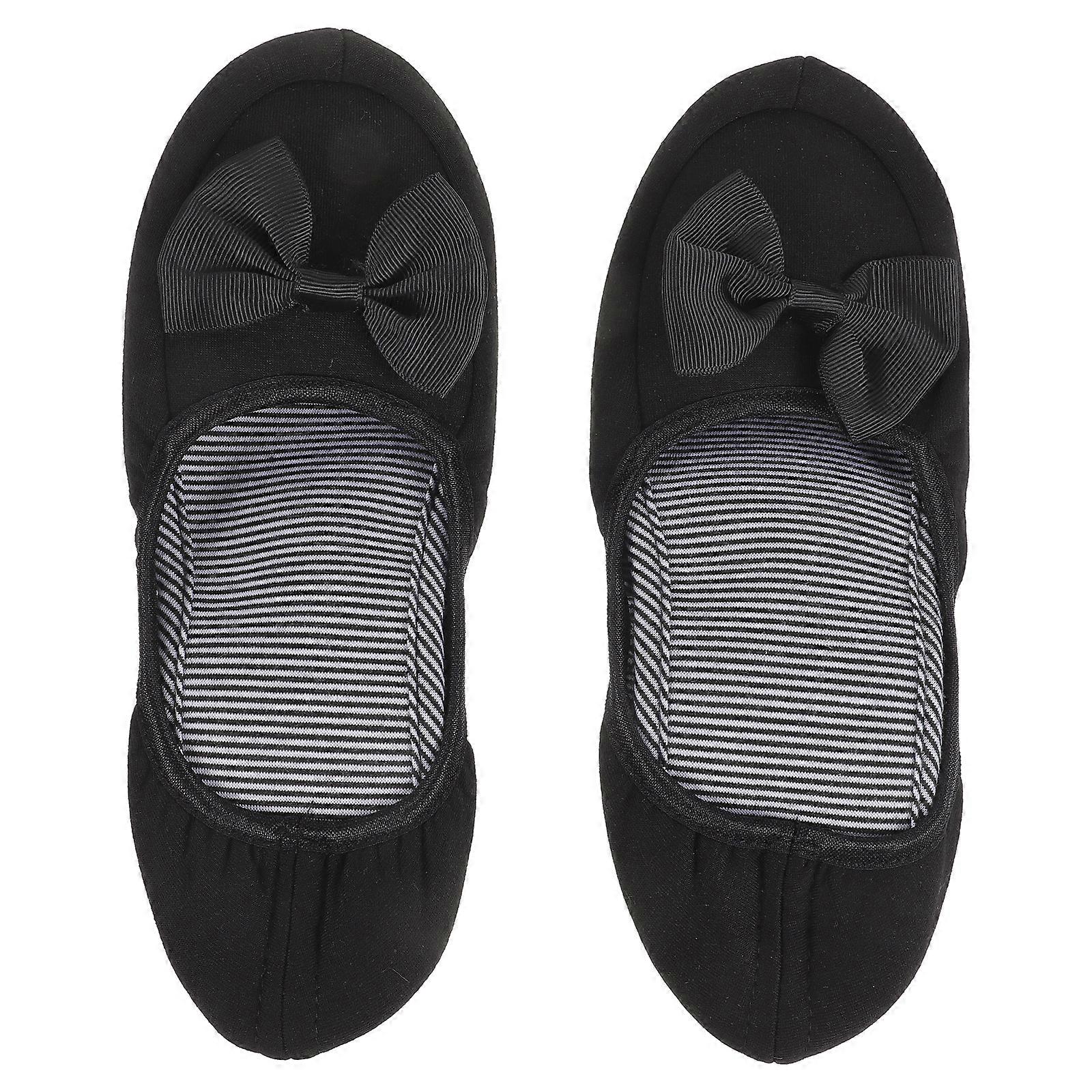 24.5cm Women Portable Folding Slippers Travel Indoor Silent Bottom Cotton Loafer - Free Size (Black)