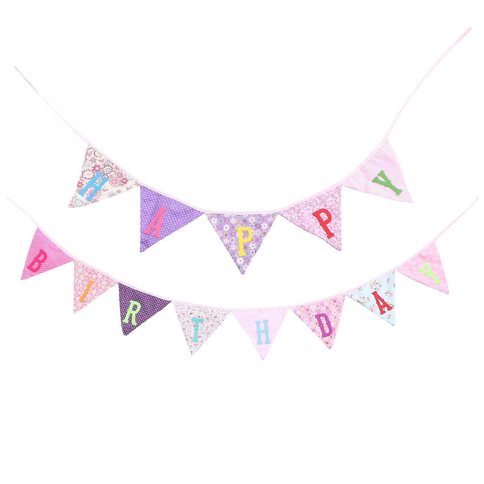 2.4M Printed Cotton Pennant Banner for Children's Birthday Party Decoration Pink 2pcs