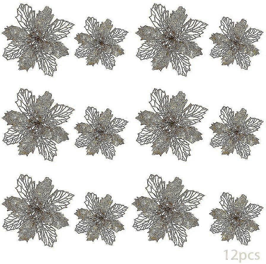 24pcs Christmas Glitter Poinsettia Artificial Flowers