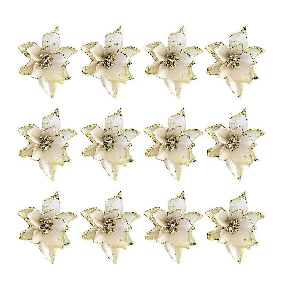 24pcs Christmas Flower Simulation Gold Powder Flower Christmas Tree Decoration Flower Golden