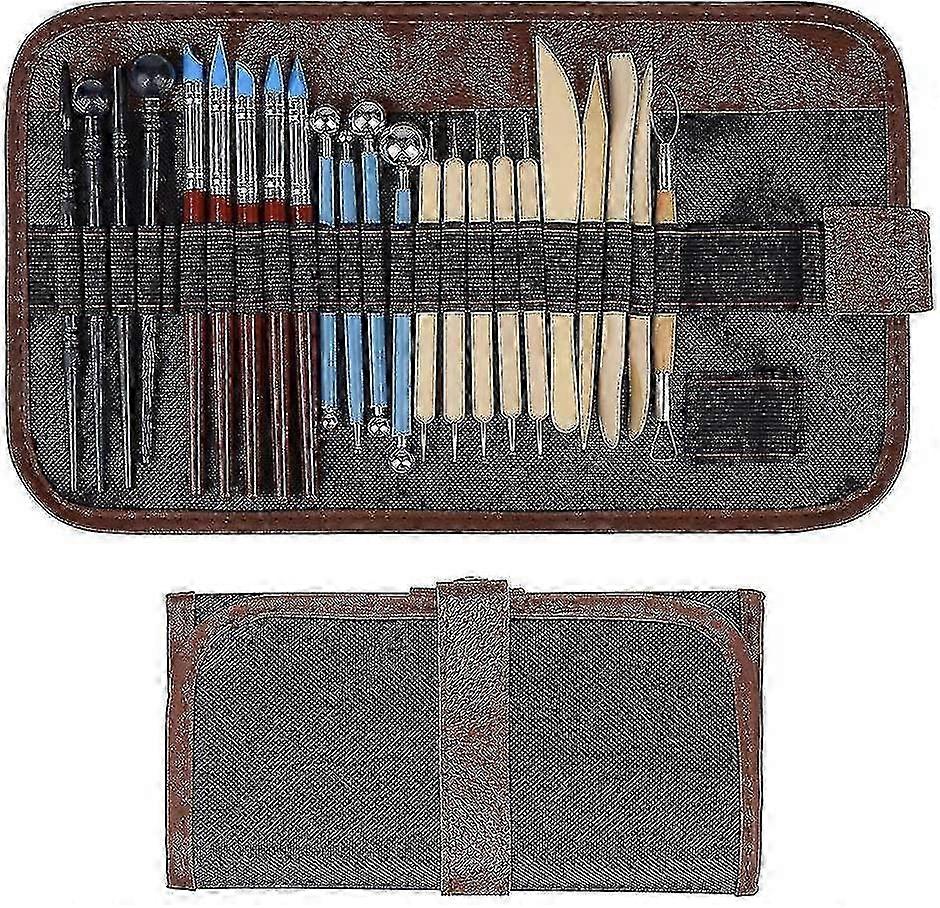 Package Contains: 5pc Dotting Tools, 5pcs Ceramic Tools, 5pcs Rubber Pen, 4pcs Inox Ball Stylus, 4pcs Plastic Kit, 1pcs Pottery Sponge, also come with canvas case, keep these carving tools well organized convenient to transport. Premium Quality Material: stainless steel, rubber, plastic, wood. The stainless steel ballpoint pen is sturdy durable, the wooden hle is very smooth comfortable, easy to grip. The pottery sponge is perfect for cleaning, smoothing, adding or absorbing water. Dual Ends Design: The clay pottery tool with the double ends, give more flexibility convenience for your design. Variety and Versatility: Rocking tools in different sizes shapes allow you to sculpt different details, perfect for shaping, mixing, drawing, cutting, scraping, cleaning, sculpting, painting. Wide AppCATion: Ideal for polymer, moldable plastics, fondant decorating flower, gumpaste, clay, wax cutting, cake decorating, pumpkin cutting many more. Product descriptionProduct Features Function :.1. Wooden ceramic tools with 1pcs crochet needle 4pcs wooden knives.2.Double side stipple tools are great for making stippling, mixing seams in clay, rock painting, mela rock painting, embossing pattern more.3. Tips Pubber Pen is ideal for removing fingerprints, smoothing, shaping, modeling.4.The Ball Hle Stylus is ideal for training, making big points, etc.5.Plastic Stylus is a suit for smoothing lines, sculpting, sculpting, sewing, etc.6.The Pottery sponge is used to clean, smooth, add or absorb water.7.These components are lightweight, soft, comfortable to grip, perfect for beginners hobbyists.The package includes :.5 pcs double-sided dotting tools.5 pcs Wooden ceramic tools.5 pieces of rubber pen.4-piece stainless steel ballpoint pen.Kit of 4 plastic pieces.1 pcs Pottery Sponge ..1 PC canvas bag.Attention :.1. Young children use sculpting tools that require adult supervision such as sculpting tools with functional tips.2. Please keep away from children under 3 years old.