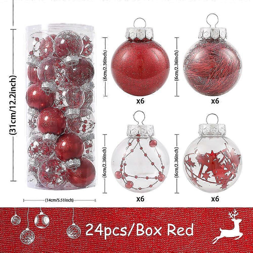 24pcs/box 6cm Christmas Ball Pet Transparent Xmas Tree Hanging Ornaments Party Decoration For Home New Year Gift Noel Navidad