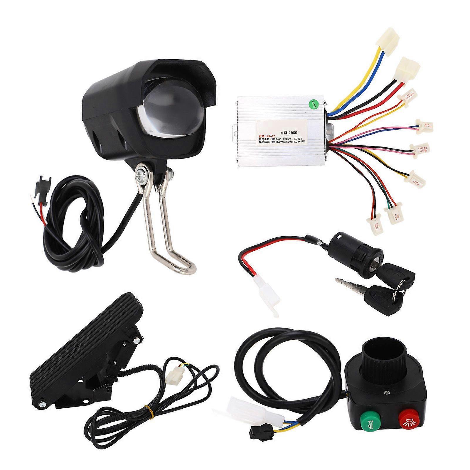 24V 350W Brushed Motor Controller with Foot Throttle Pedal Front Lamp Switch Set for Electric Bicycles Scooters Tricycles