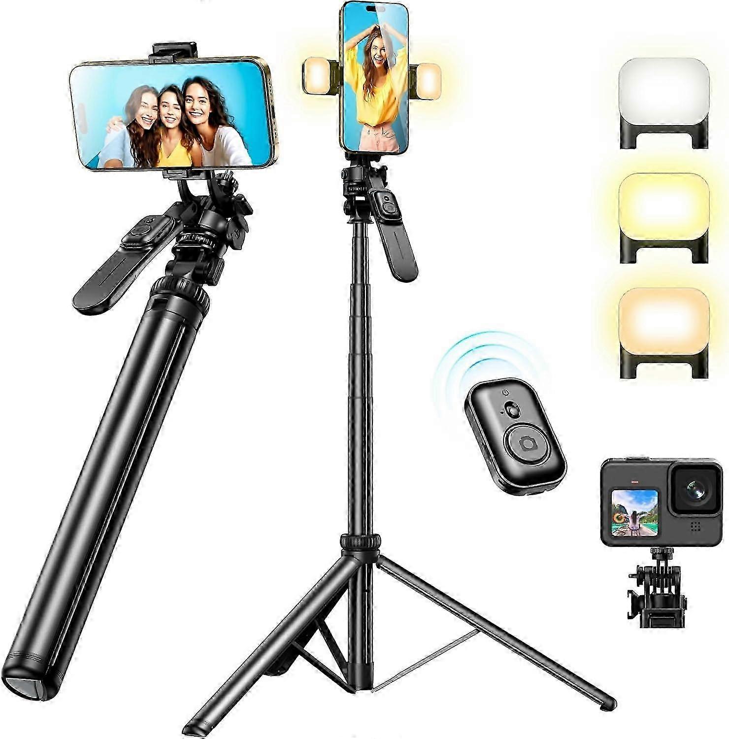25-26 Phone Tripod & Selfie Stick, Tripod for iPhone with Remote Extendable All-in-1 Travel Light Phone Tripod Stand, Portable Camera Tripod with Cell