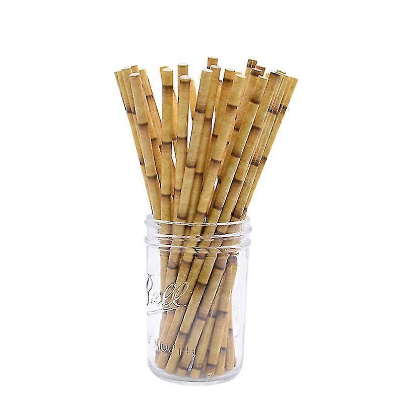 25pcs/lot Green Bamboo Paper Straws Eco-friendly Material Tropical Party Supplies Drink Straws