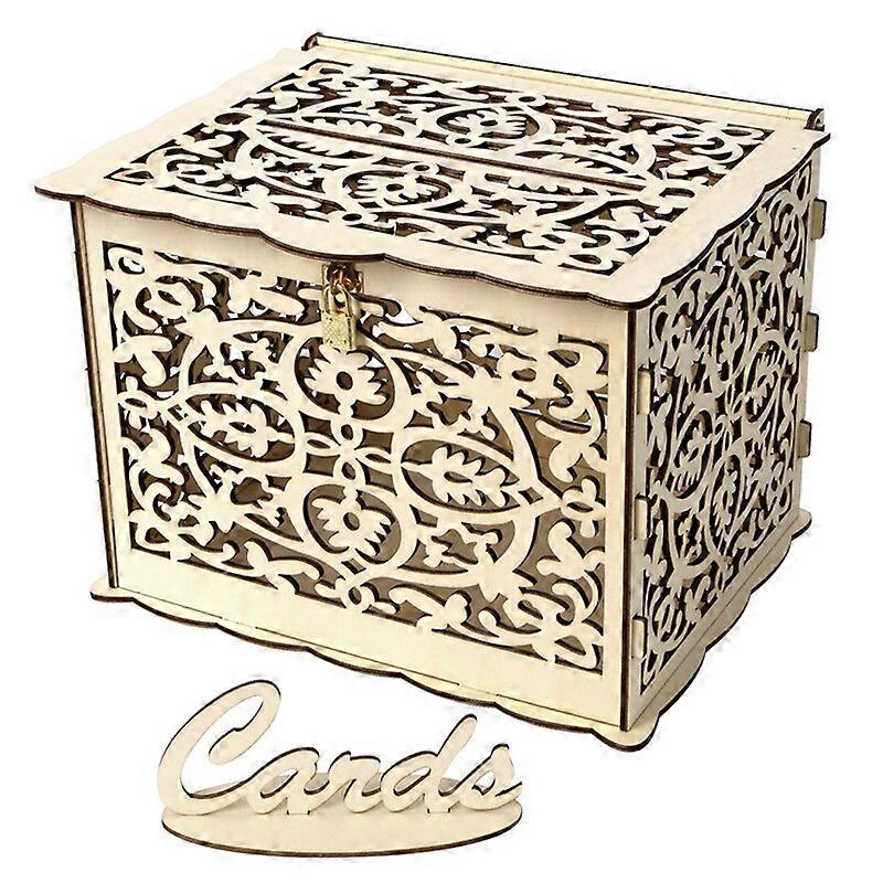 25x20x18.3cm DIY Wedding Gift Card Box Wooden Sign Box Beautiful Wedding Decoration Supplies for Birthday Party With Lock Key