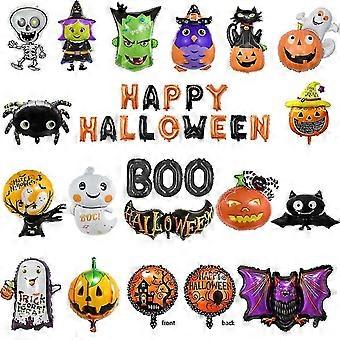 29pcs Halloween Aluminum Foil Balloons & Halloween, Aluminum Foil Balloons Of Bats, Pumpkins And Spiders, Halloween Party Decorations