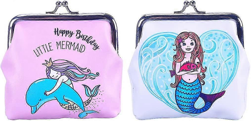 2pack Mermaid Coin Purse Animal Change Pouch Pu Clutch Wallet Kiss Lock Clasp Handbag Buckle Cash Bag Trinkets Pouch For Girl Women