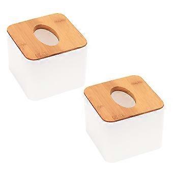 2pcs Plastic Tissue Box Cylindrical Tissue Paper Holder With Wooden Cover For Home Office