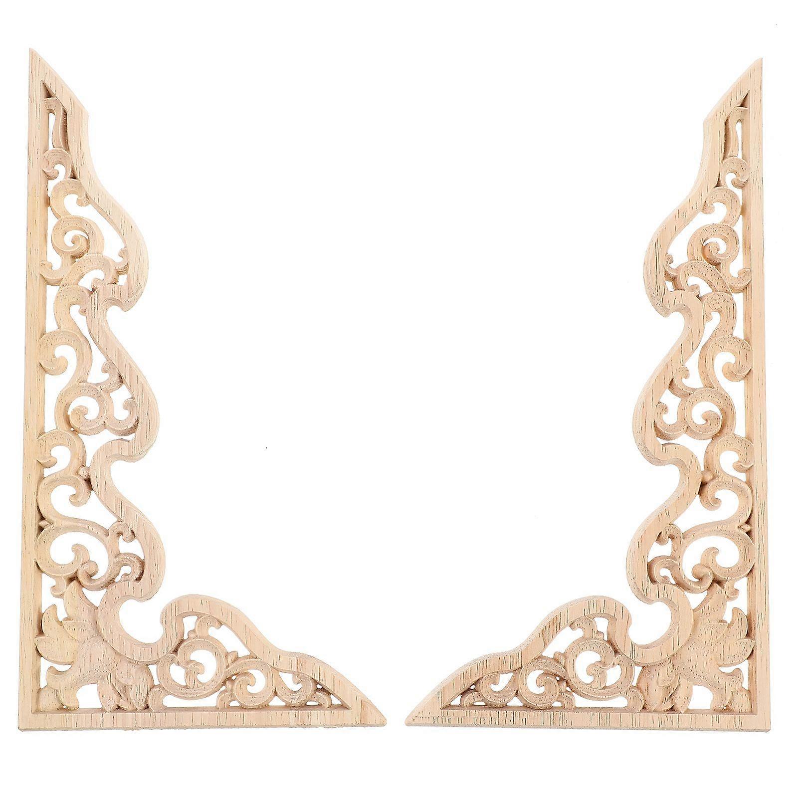 2pcs Wood Carved Onlay Wood Carving Appliques Furniture Door Solid Wood Decal