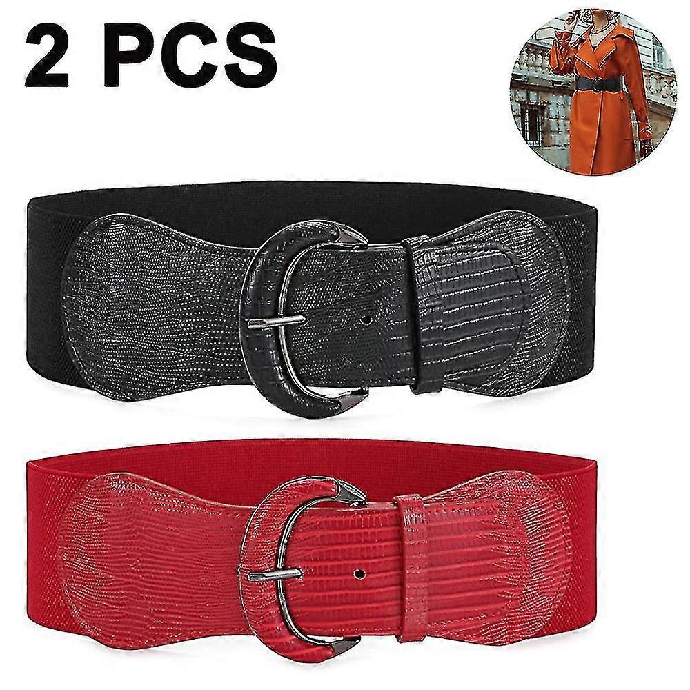 2pcs Women Stretchy Wide Waist Belt Dress Elastic Belt Hook Buckle