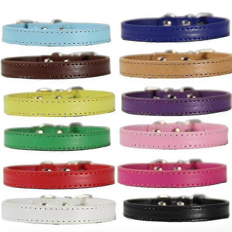 2pcs Pu Leather Solid Soft Colorful Pet Dog Collar For Small Medium Large Dogs Neck Strap Adjustable Safe Labrador Puppy Kitten Cats Collar