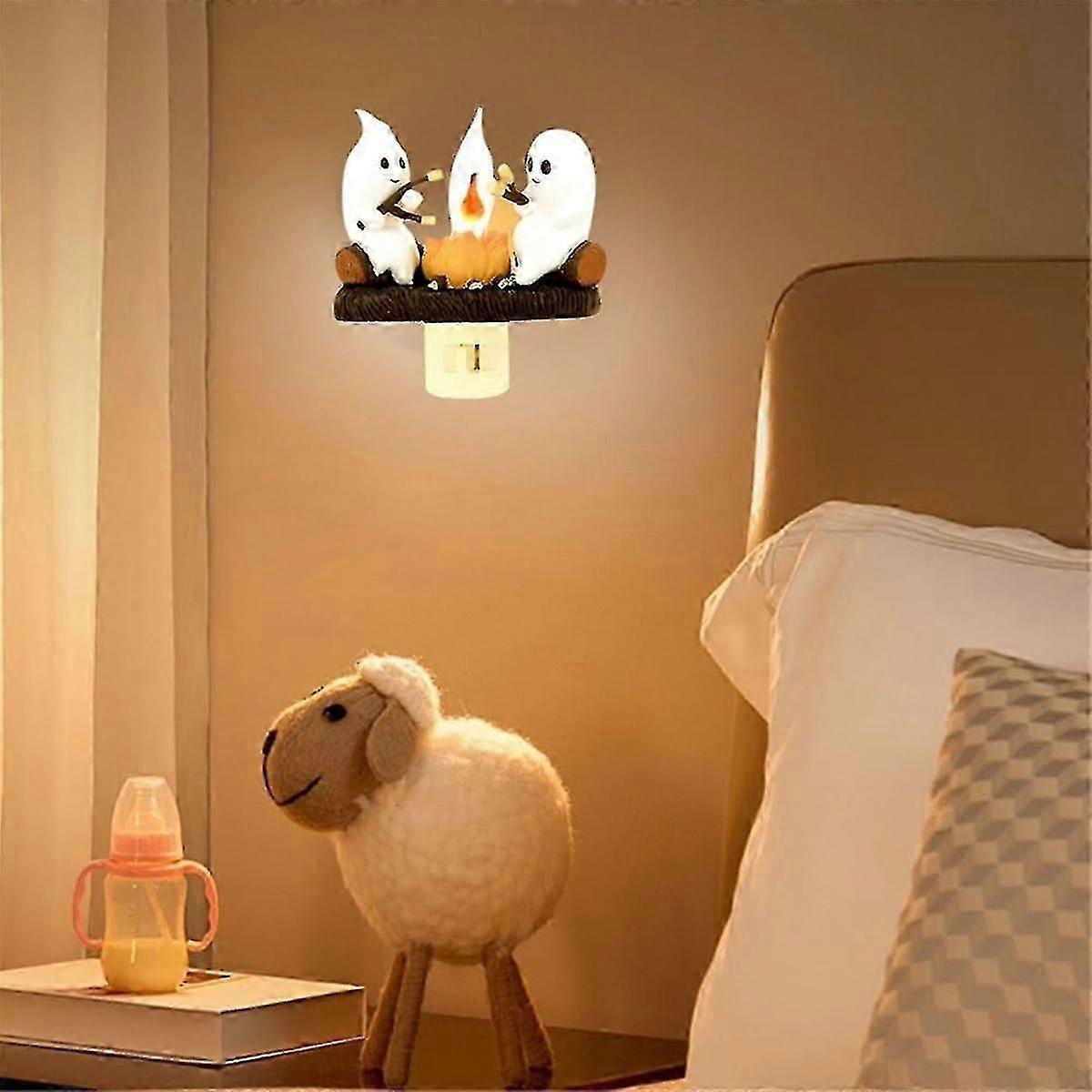2PCS Ghost Campfire Flickering Nightlight 3D LED Small Faux Campfire Night Light Flicker Flame Hall