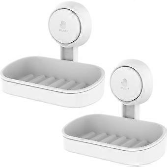 2PCS Suction Cup Soap Dish No Drilling Reusable 1 Second Installation Shower Soap Dish Load 5KG Wate