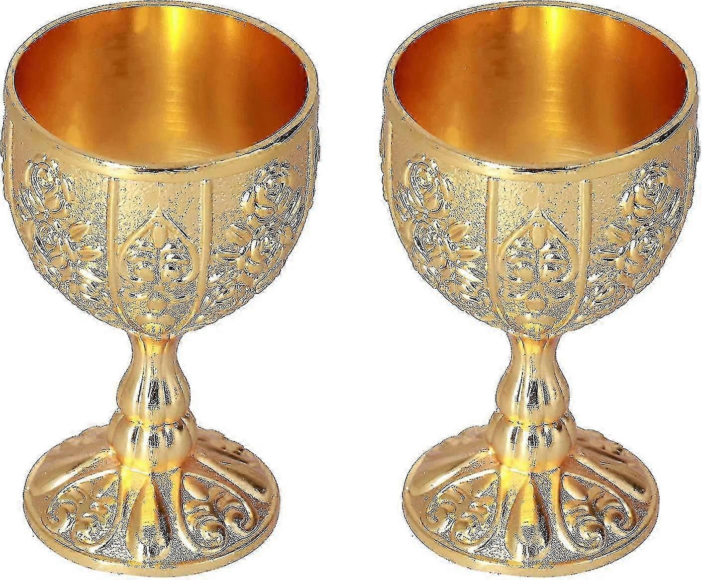 2pcs Royal Chalice Embossed Cup, Vintage Handmade Goblet Chalice With Pattern(pumpkin Gold)