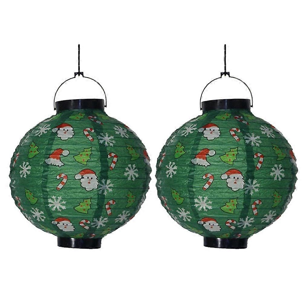 2pcs Christmas Luminous Paper Lantern Hangable Paper Lantern Christmas Scene Layout Decorations with Lamp Green Santas Snowflake Style No Battery