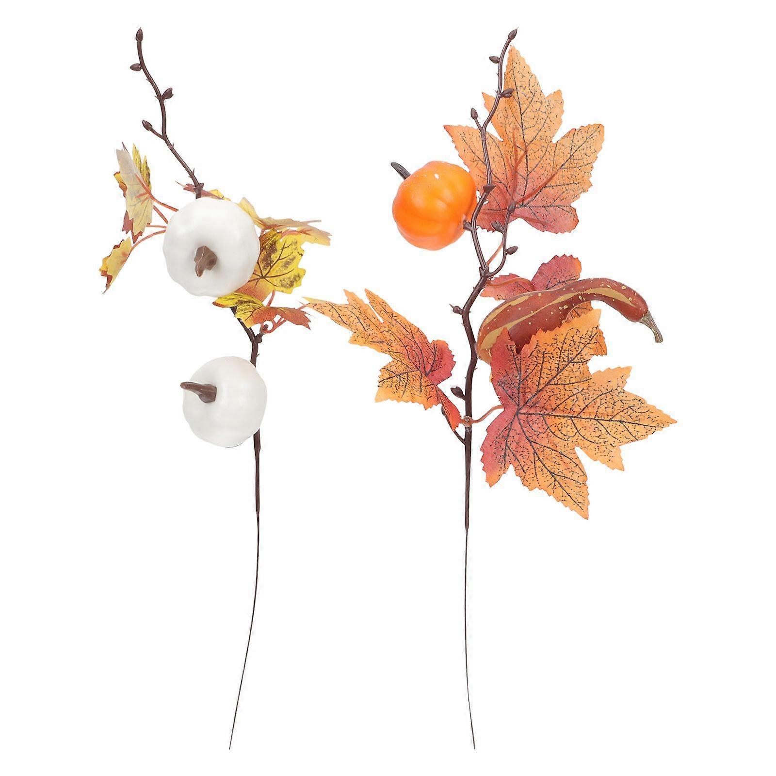 2pcs Halloween Fall Pick Pumpkin Branch Artificial Maple Leaf Stem Fall Layout Decor
