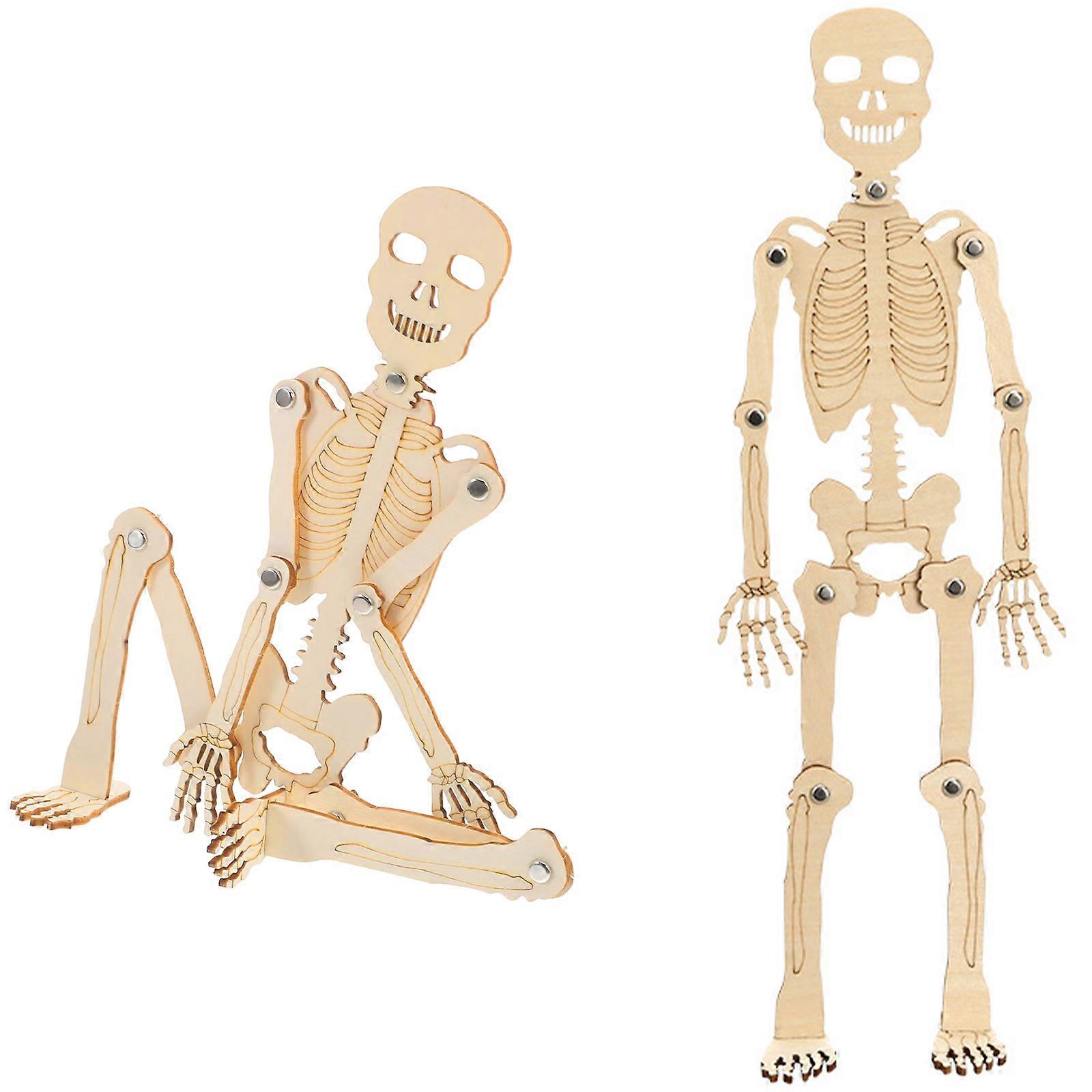 2PCS Wood Human Skeleton Assembly Kits Craft Toy Science Teaching Toy Cognitive Development for Student STEM Learning Multicolor