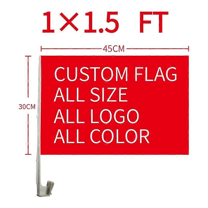 2pcs/lot Custom Car Flag 30x45cm Polyester double sided Banner with 45cm plastic flag pole Car window flags
