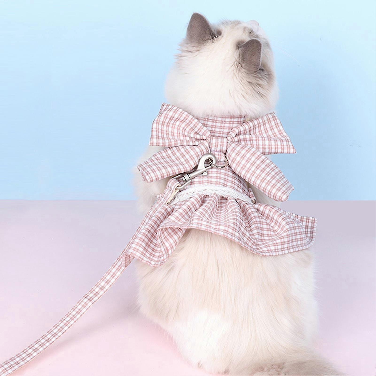 2pcs/set Pet Harness Set Bow-knot Anti-escape Adjustable Cats Chest Strap Traction Leash Kit For Outdoor