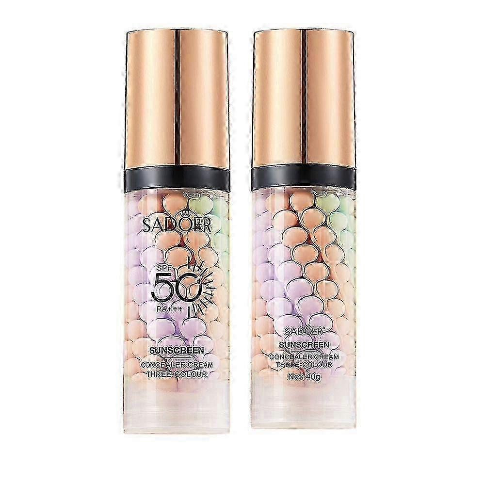 2X Face Makeup Primer Tri-color Cream Contour Color Isolation Waterproof Makeup Foundation Natural Makeup Base Cream 40g