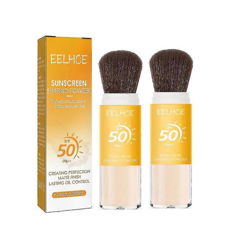 2x Sunscreen Setting Powder, Spf 50 Pa++, Mineral Sunscreen Brush Powder, Oil Control Natural Matte Finish, Long Lasting Lightweight Breathable Suitab