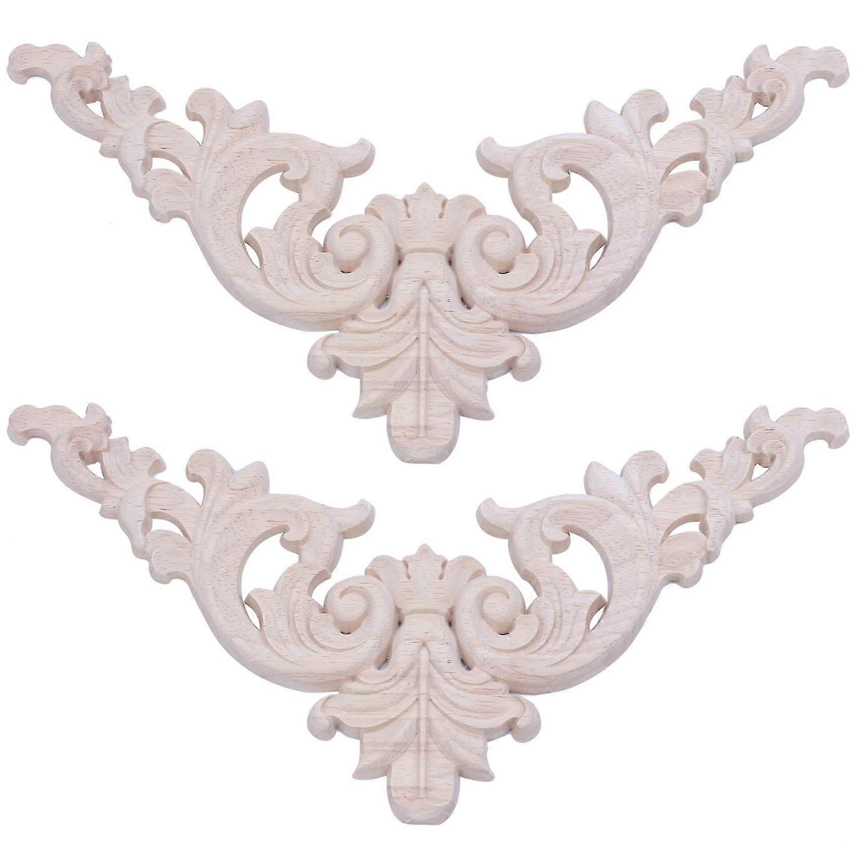 2x 20 X 20cm Rubber Wood Oak Carved Corner Onlay Applique Cabinet Unpainted