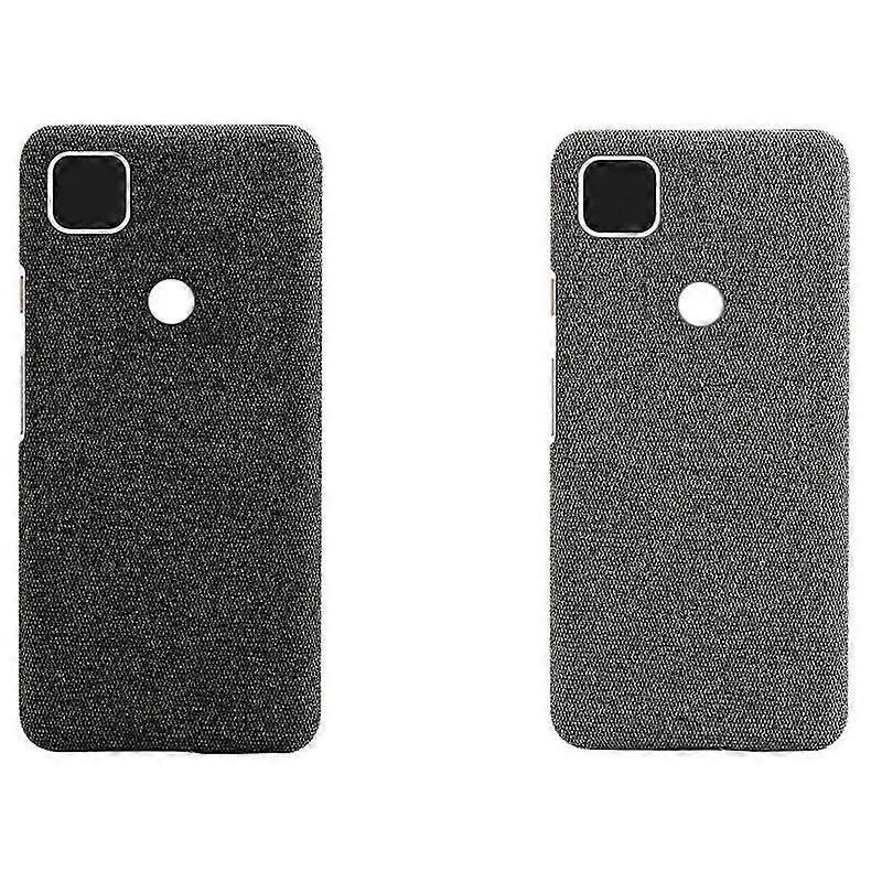 2x Phone Shell Cloth Pattern Leather Case Pixel Anti Drop Protective Cover for Pixel 4A(Gray&Black)