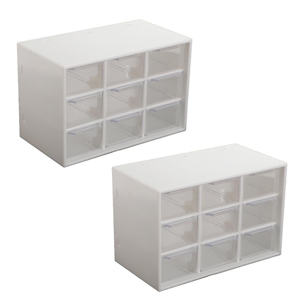 2x Storage Cabinet 9Grid 3 Layer Drawer Storage Box Sundries Organizer White