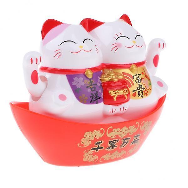 2xPlastic Twin Maneki Neko Model Shaking Hands Figure Lucky Cat Car Ornament A