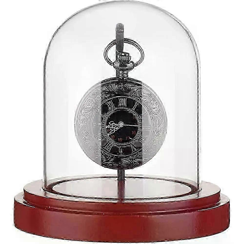 3 x 4 inch Pocket Watch Display Case Glass Watch Dome Cloche with Metal Hook Watch Display Jar with Wood Base Glass Display Dome