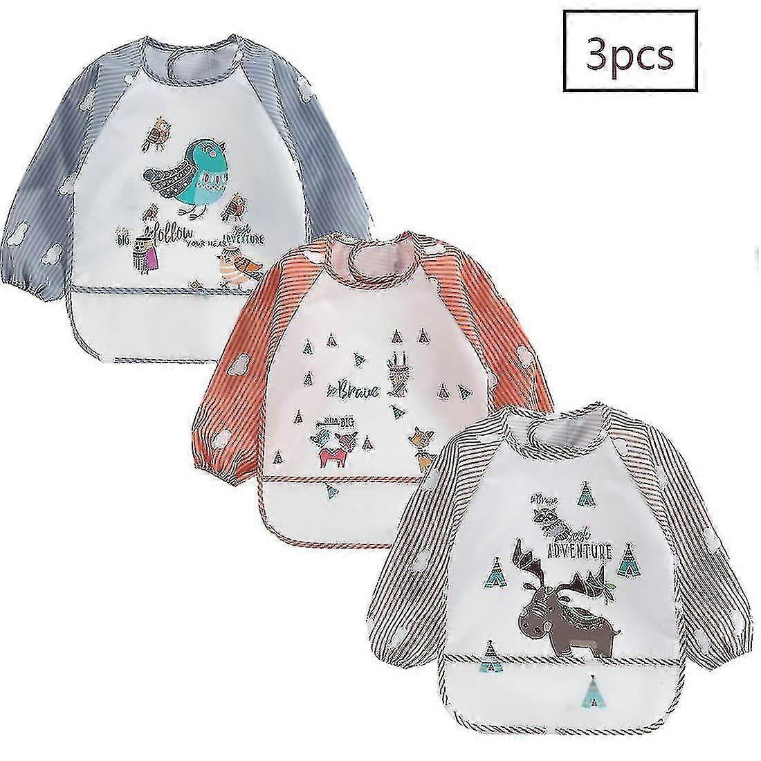 3 Pcs Waterproof Baby Bib Sleeve Bib Washable Bib Wet Protection 6-36 Months