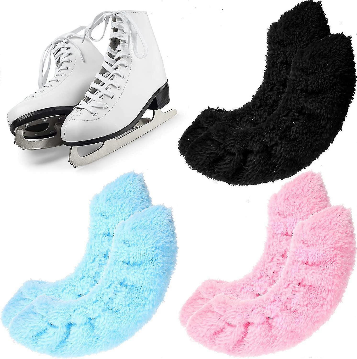 3 Pairs Skate Guards Sports Ice Skate Blade Covers Black Blue Pink Ice Skates Covers Ice Hockey Blade Cover Figure Skate Terry Cloth Blade Covers Blad