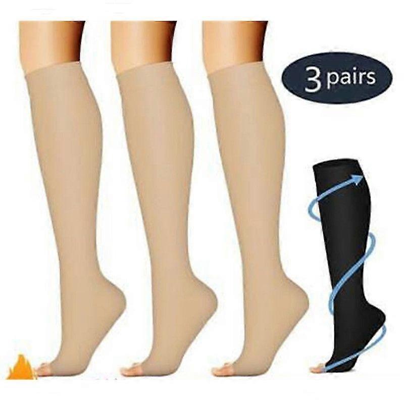3 Pairs S- XXL Knee High Compression Stockings Open Toe 20-30mmhg Compression Socks for Woman Men