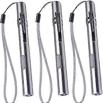 3 Pack Usb Pen Light Led Torch For Nurses,stainless Steel Medical Pocket Flashlight Rechargeable Mini Torch Handy Penlight With Clip