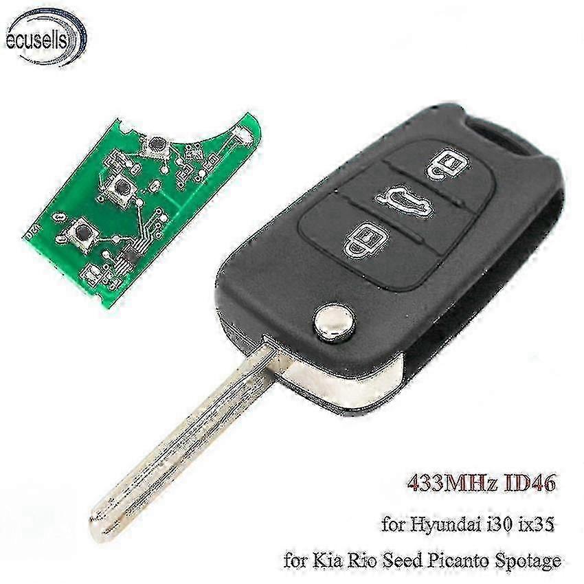 3 Button Flip Folding Remote Key Fob 433mhz With Id46 Chip For Hyundai I30/ix35 For Kia Rio Seed Seedpro Picanto Sportage - XY