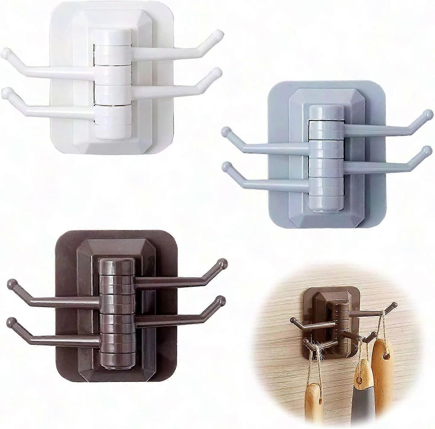 3 Pack Rotating Self Adhesive Wall Hooks with 4 Rotating Arms - Key Holder for Kitchen Bathroom Office