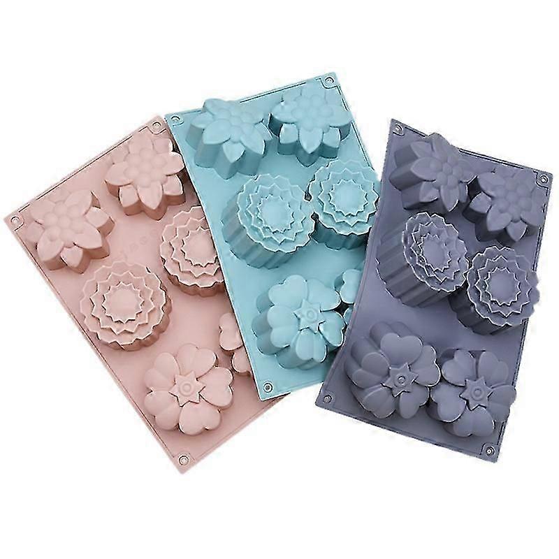 3Pack Silicone Fancy Soap Molds - 6 Cavity Handmade Sopa Molds for Cake, Cupcake, Muffin, Cake, Pud