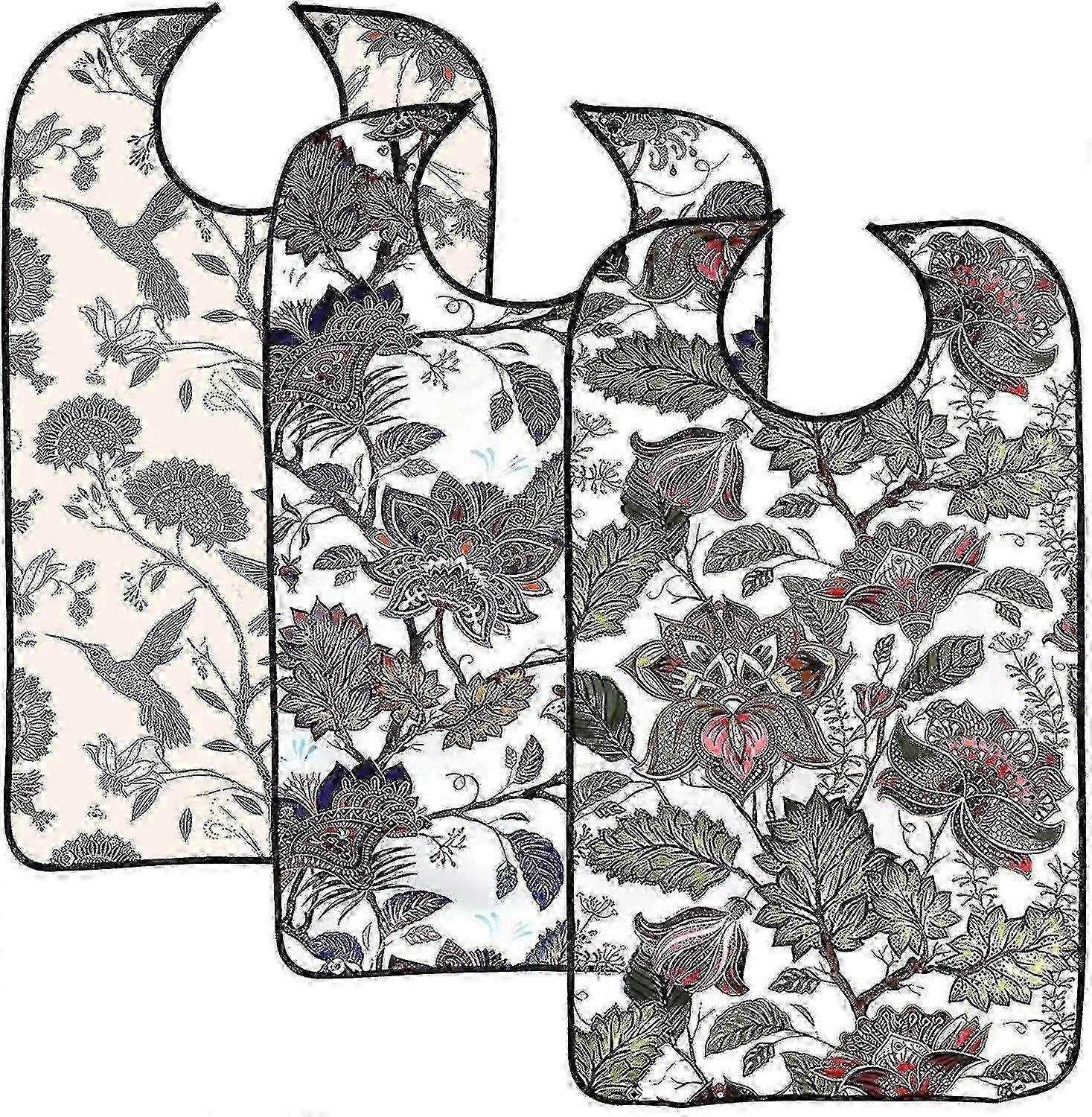 3 Pack Washable Adult Bibs for Eating with Crumb Catcher Pocket