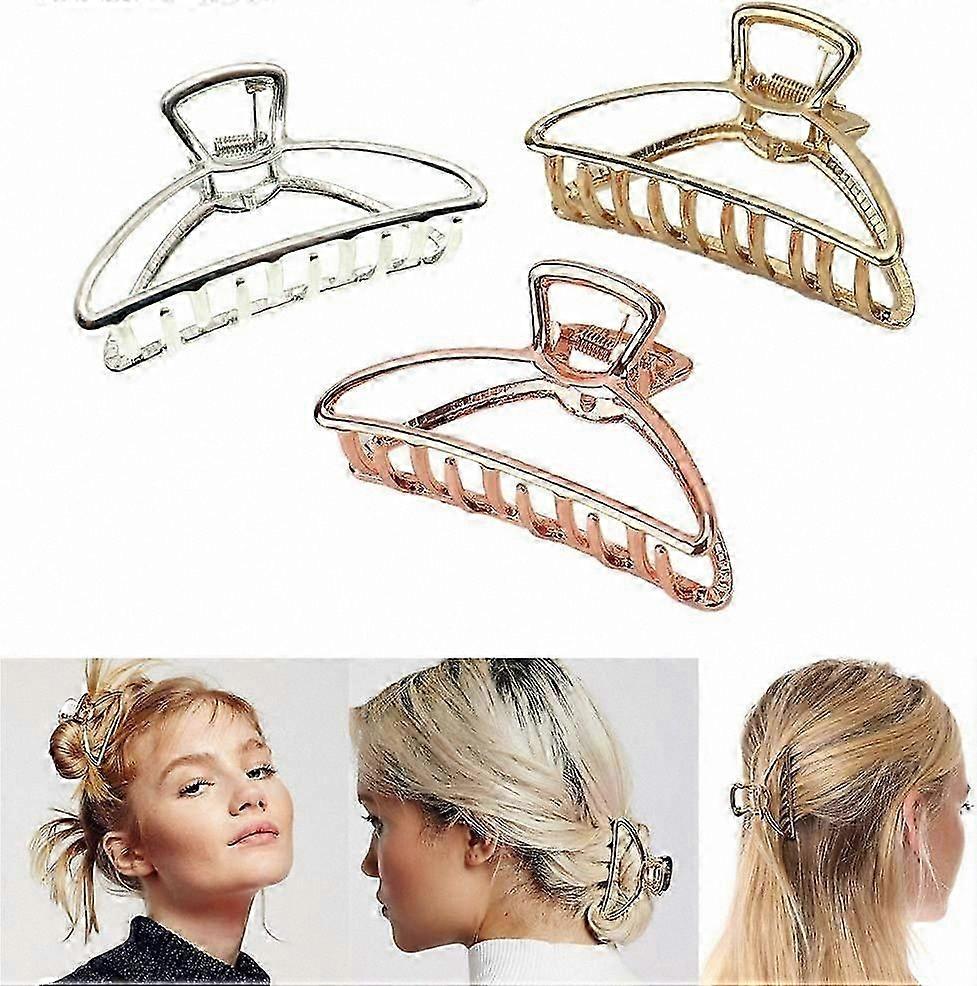 3-Pack Big Metal Claw Clips Hollow Non-Slip Hair Barrette Jaw Clamps for Styling Hair (Silver, Gold, Rose Gold)
