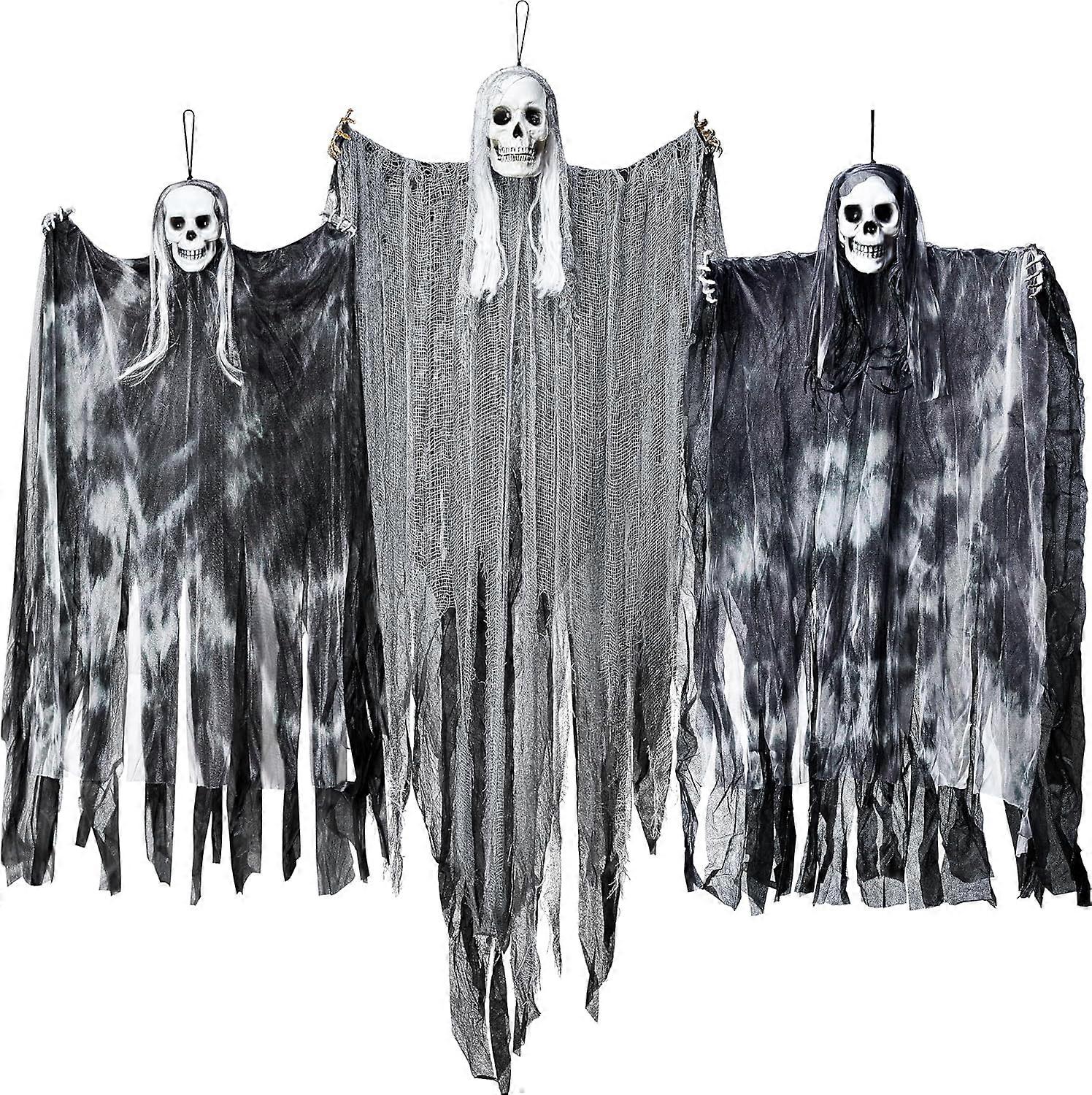 3 Pack Hanging Halloween Skeleton Ghosts Decorations, Grim Reapers for Best Halloween Outdoor Decorations